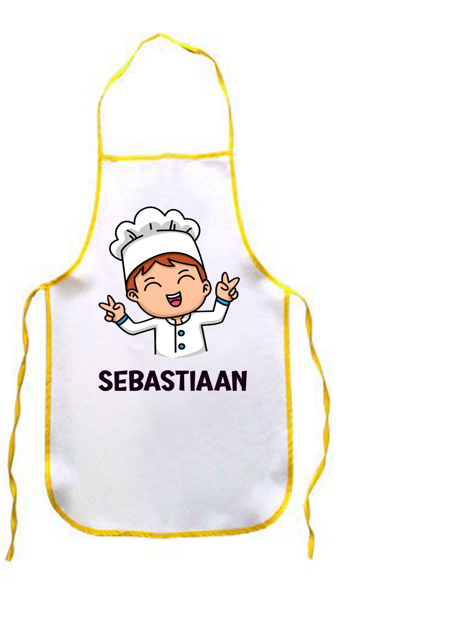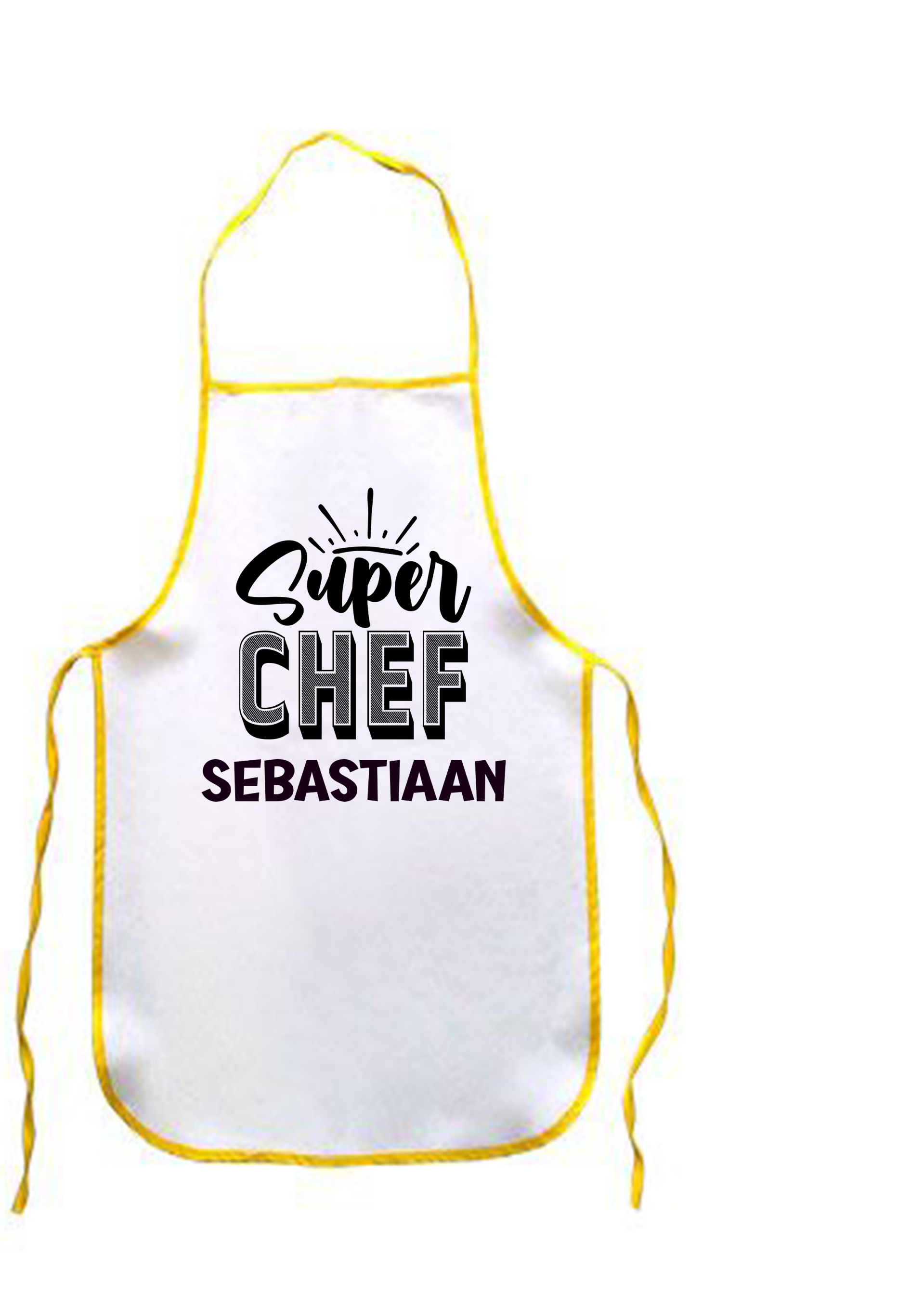 Medium: Kinder Schort met Gele Bies - maat 48 x 65 cm.