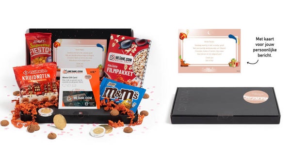 Dit pakket voor bij de film bestaat uit een selectie van verschillende soorten lekkernijen. Met veel zorg, aandacht en tijd hebben we het ideaale snackpakkket voor je samengesteld. Kies thuis je favoriete film uit met de bijgeleverde Me Jane film voucher en geniet tijdens de film van de snacks, net als bij de bioscoop!