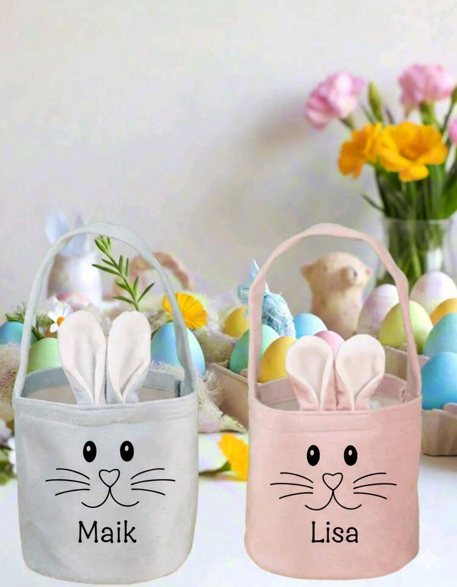 Onze mandjes zijn niet alleen schattig om te zien dankzij het vrolijke haasjesgezicht en de zachte oortjes, en een super schattig staartje, maar ze zijn ook van hoogwaardige kwaliteit. Je kunt het mandje volledig laten personaliseren met een naam naar keuze, waardoor het een blijvende herinnering wordt.